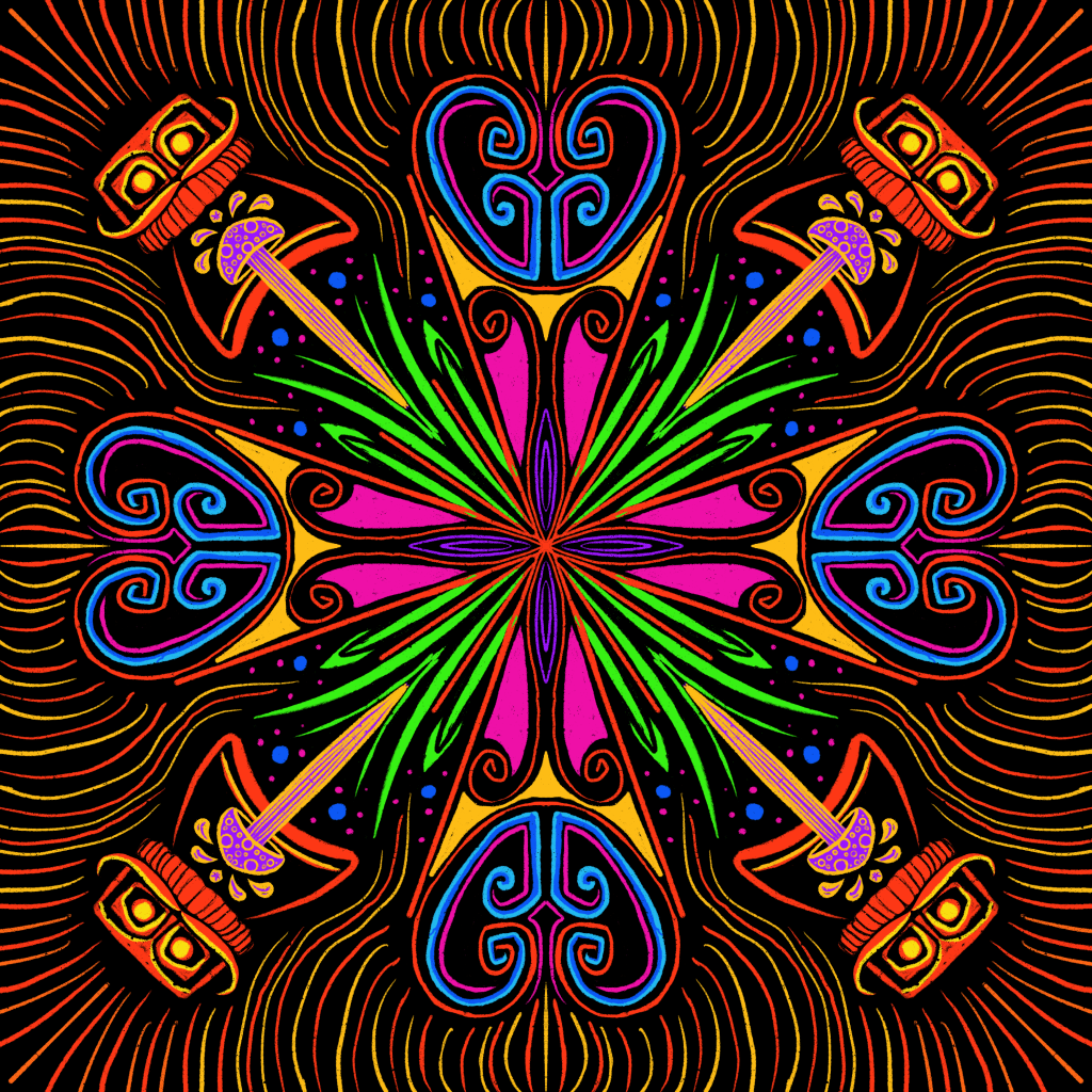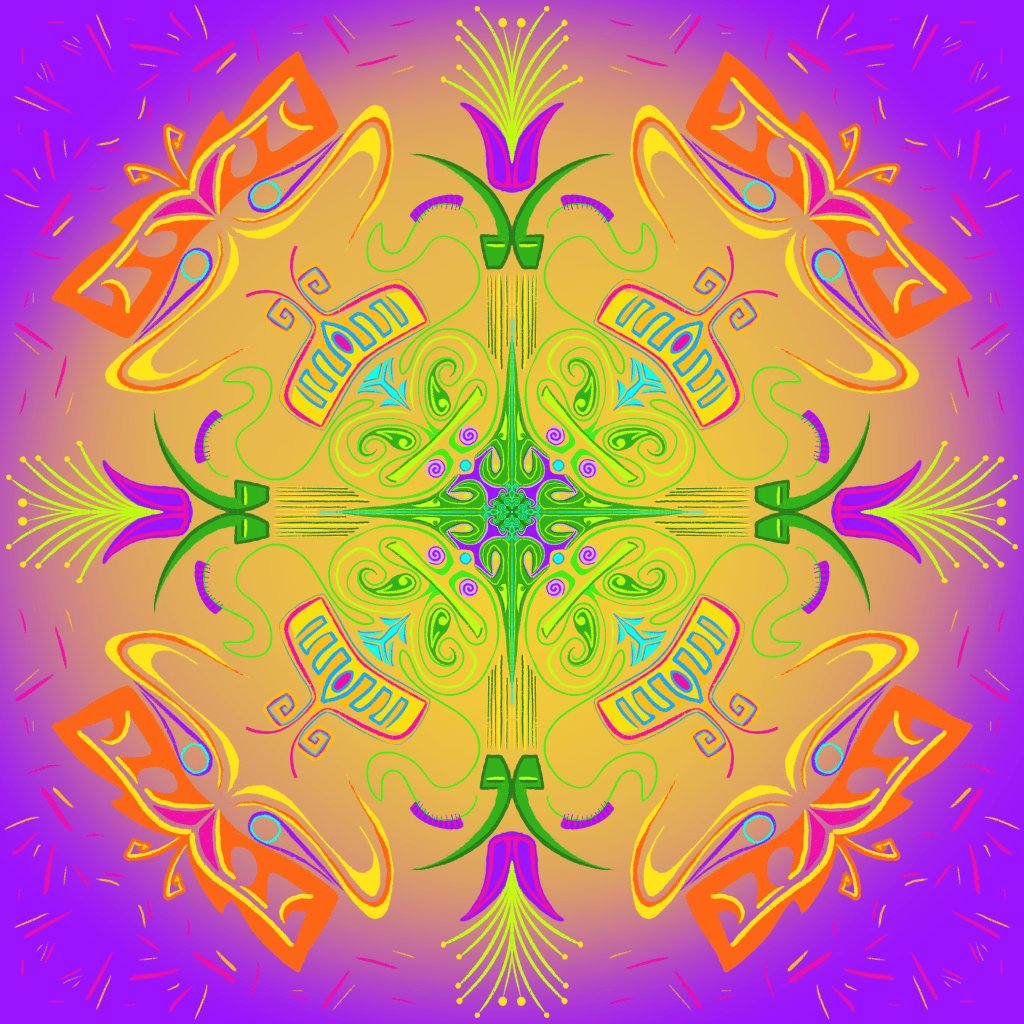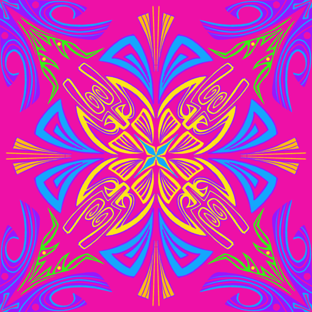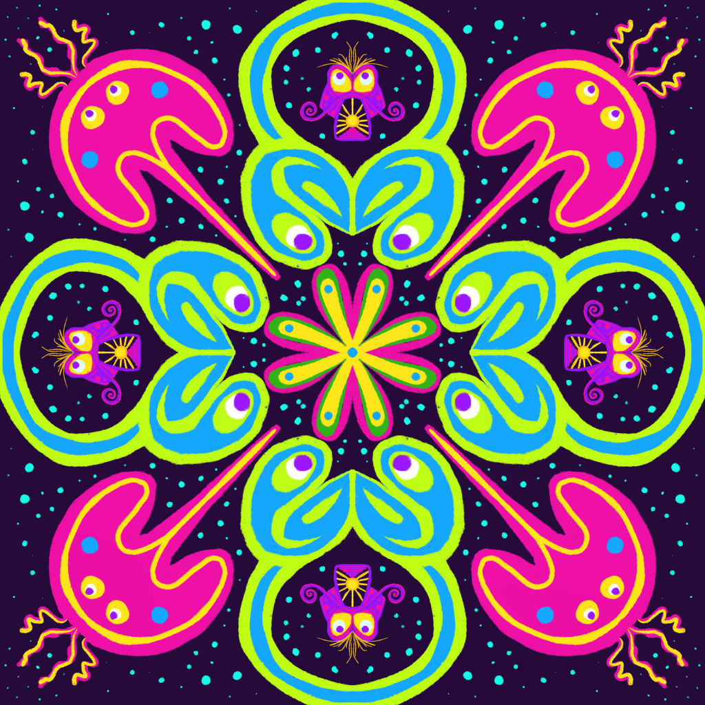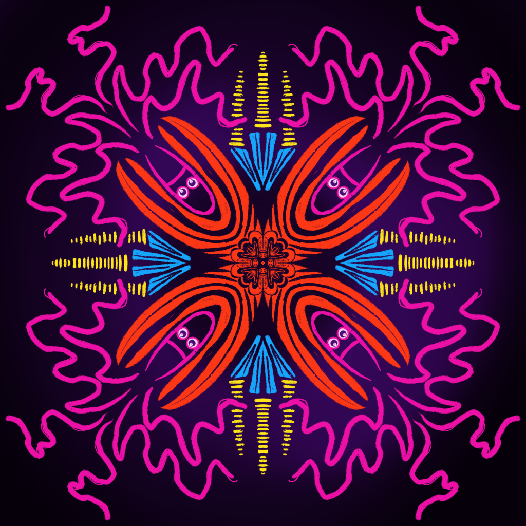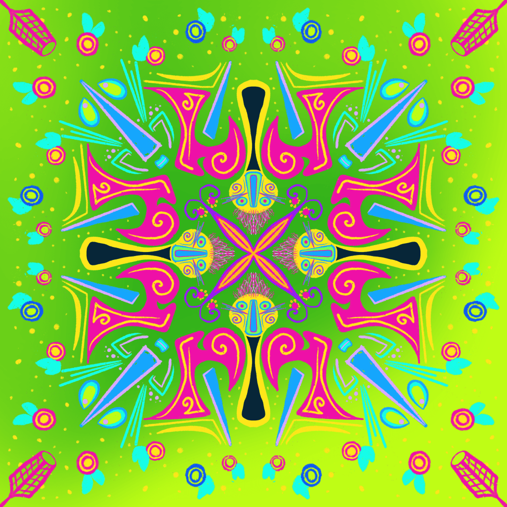 Hearing about the 100-day project, I decided to formalize my habit of drawing digital mandalas before bed, selecting a palette inspired by the vibrant textiles of Puerto Vallarta. Using Procreate, I exclusively employed a dry ink brush for the foreground and an airbrush and Hartz brush for the backgrounds.