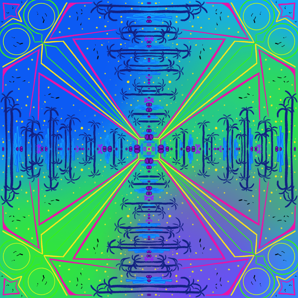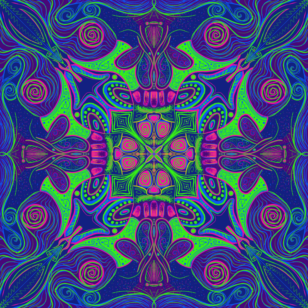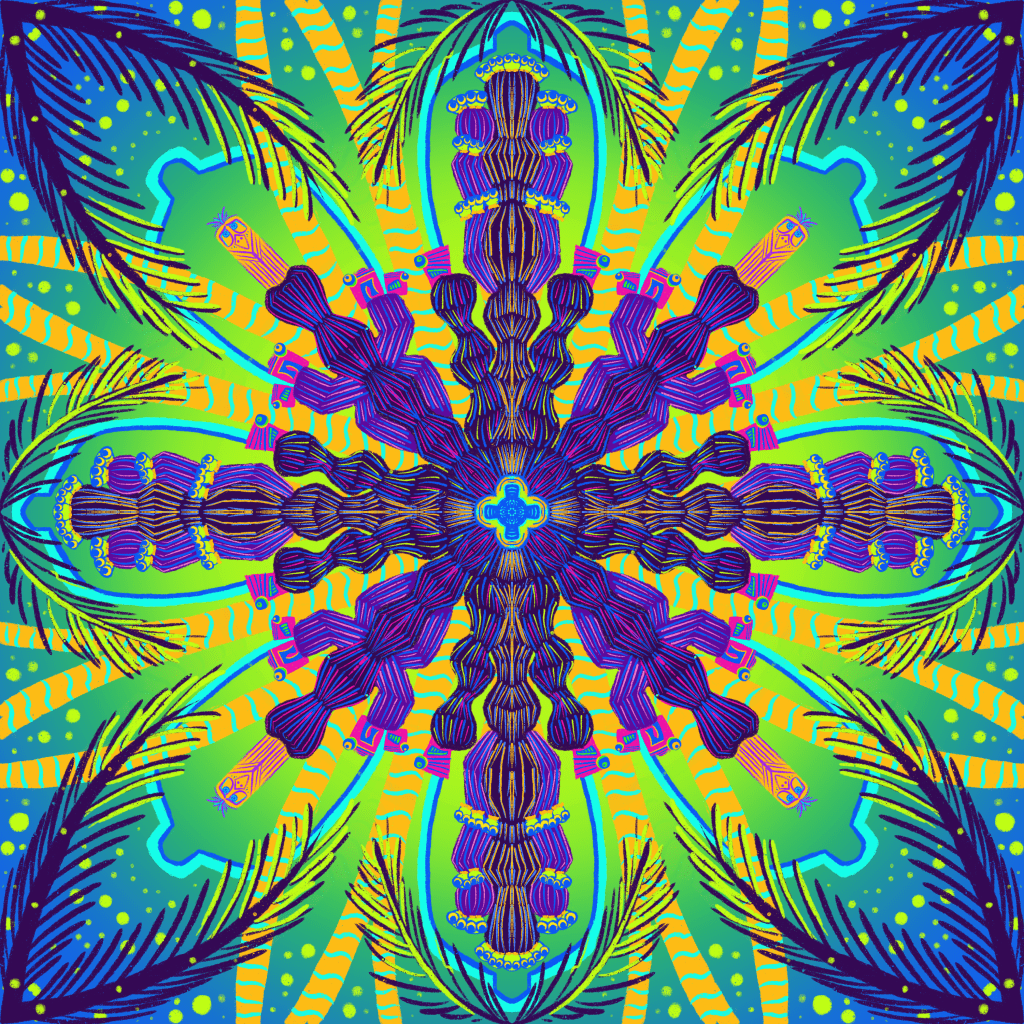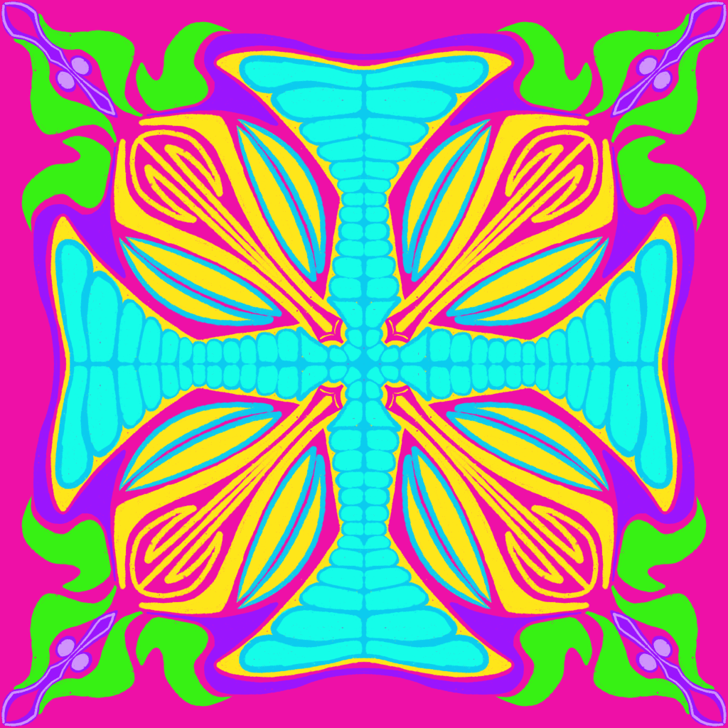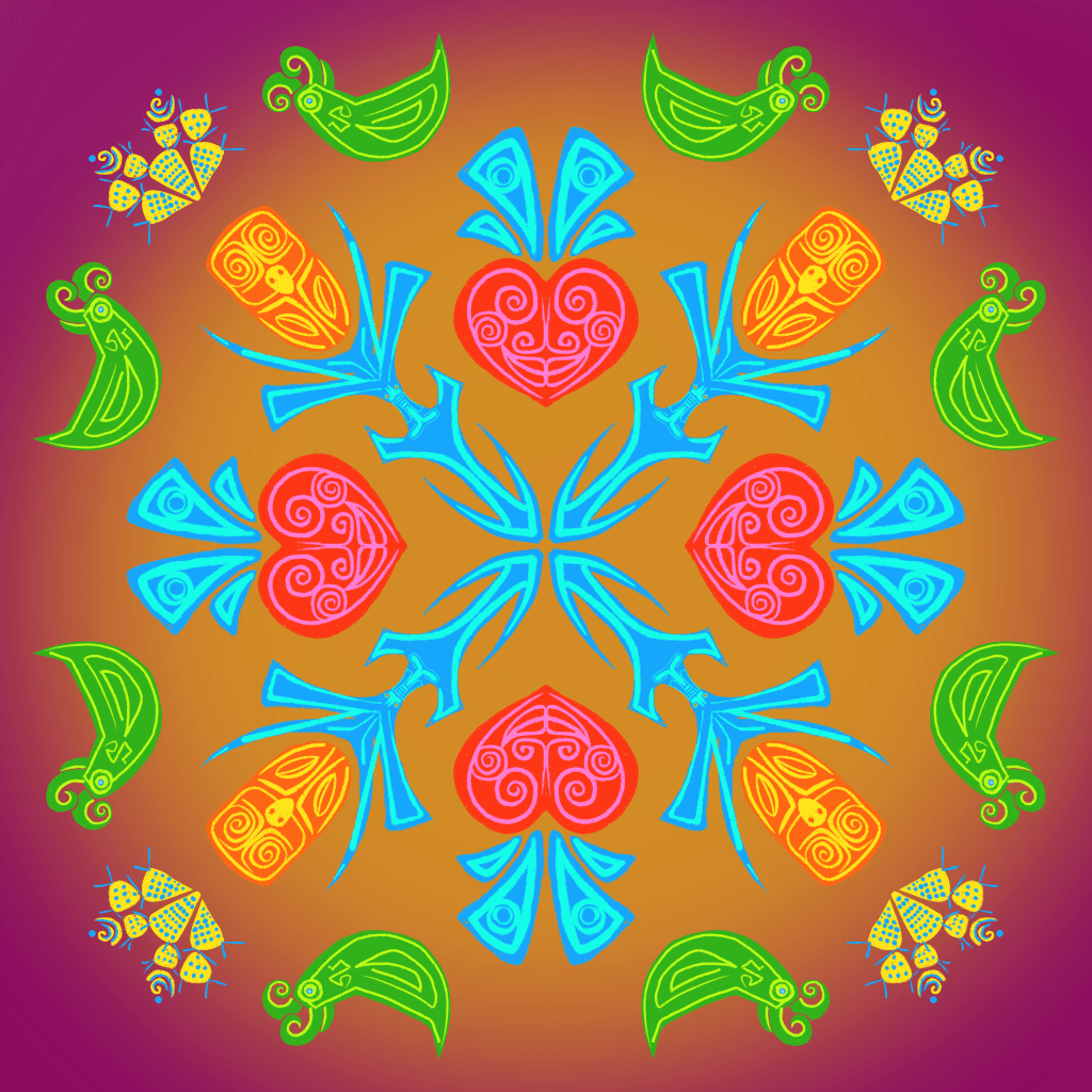 Hearing about the 100-day project, I decided to formalize my habit of drawing digital mandalas before bed, selecting a palette inspired by the vibrant textiles of Puerto Vallarta. Using Procreate, I exclusively employed a dry ink brush for the foreground and an airbrush and Hartz brush for the backgrounds.