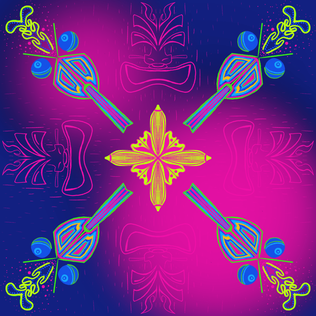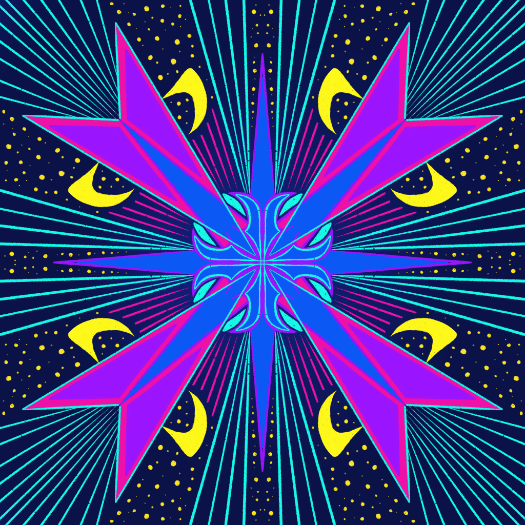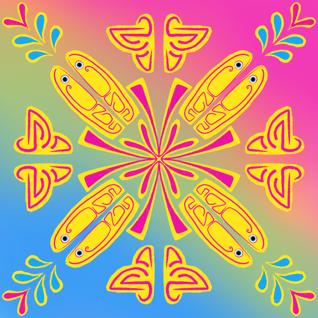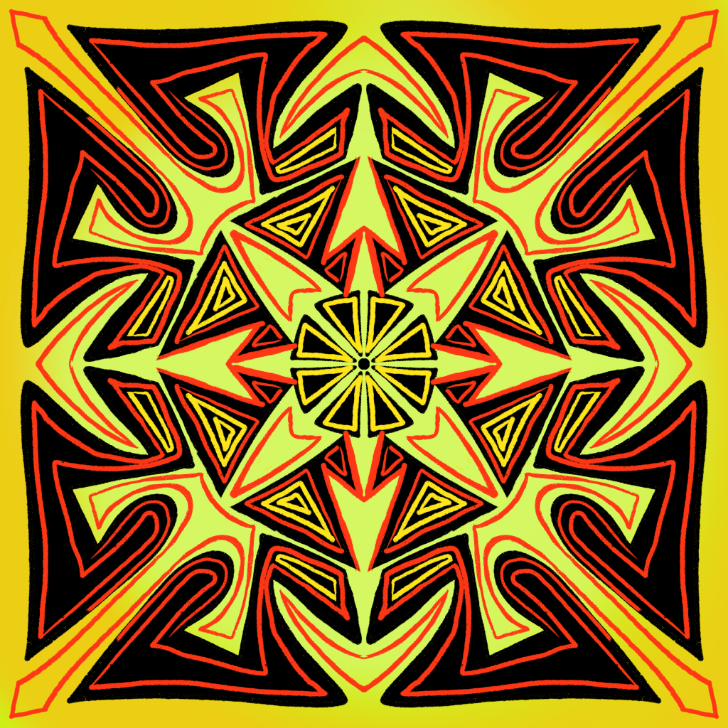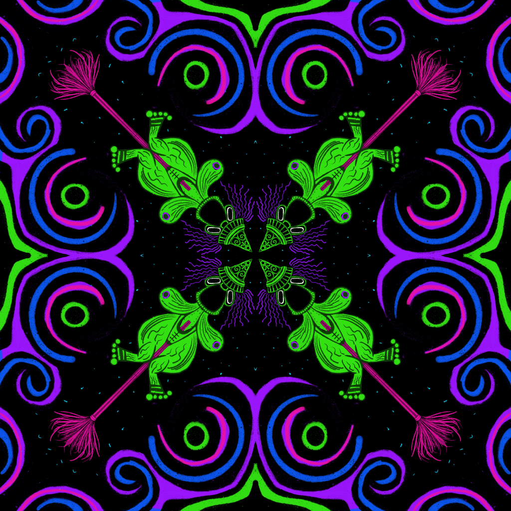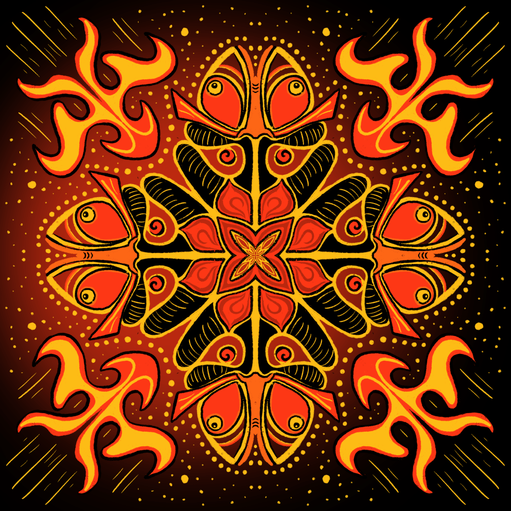 Hearing about the 100-day project, I decided to formalize my habit of drawing digital mandalas before bed, selecting a palette inspired by the vibrant textiles of Puerto Vallarta. Using Procreate, I exclusively employed a dry ink brush for the foreground and an airbrush and Hartz brush for the backgrounds.